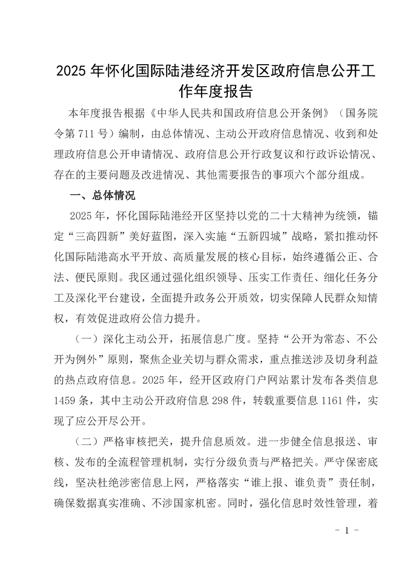 2025年怀化国际陆港经济开发区政府信息公开工作年度报告
