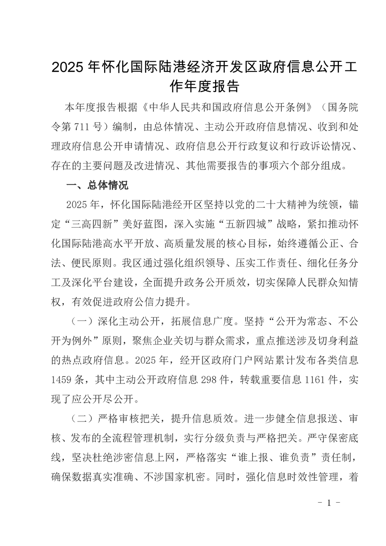 2025年怀化国际陆港经济开发区政府信息公开工作年度报告