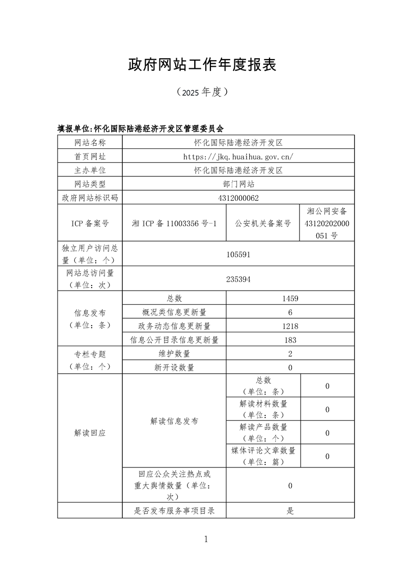 怀化国际陆港经济开发区2025年政府网站工作年度报表