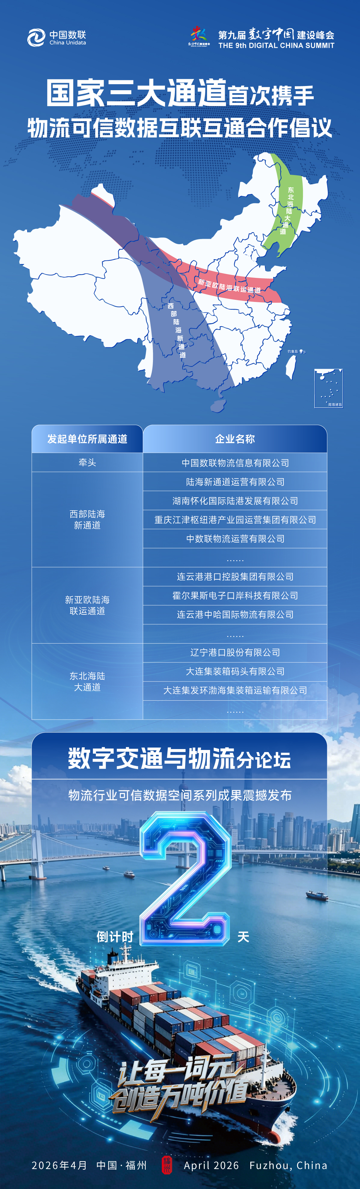 第九届数字中国建设峰会 | 国家三大通道首次携手物流可信数据互联互通合作
